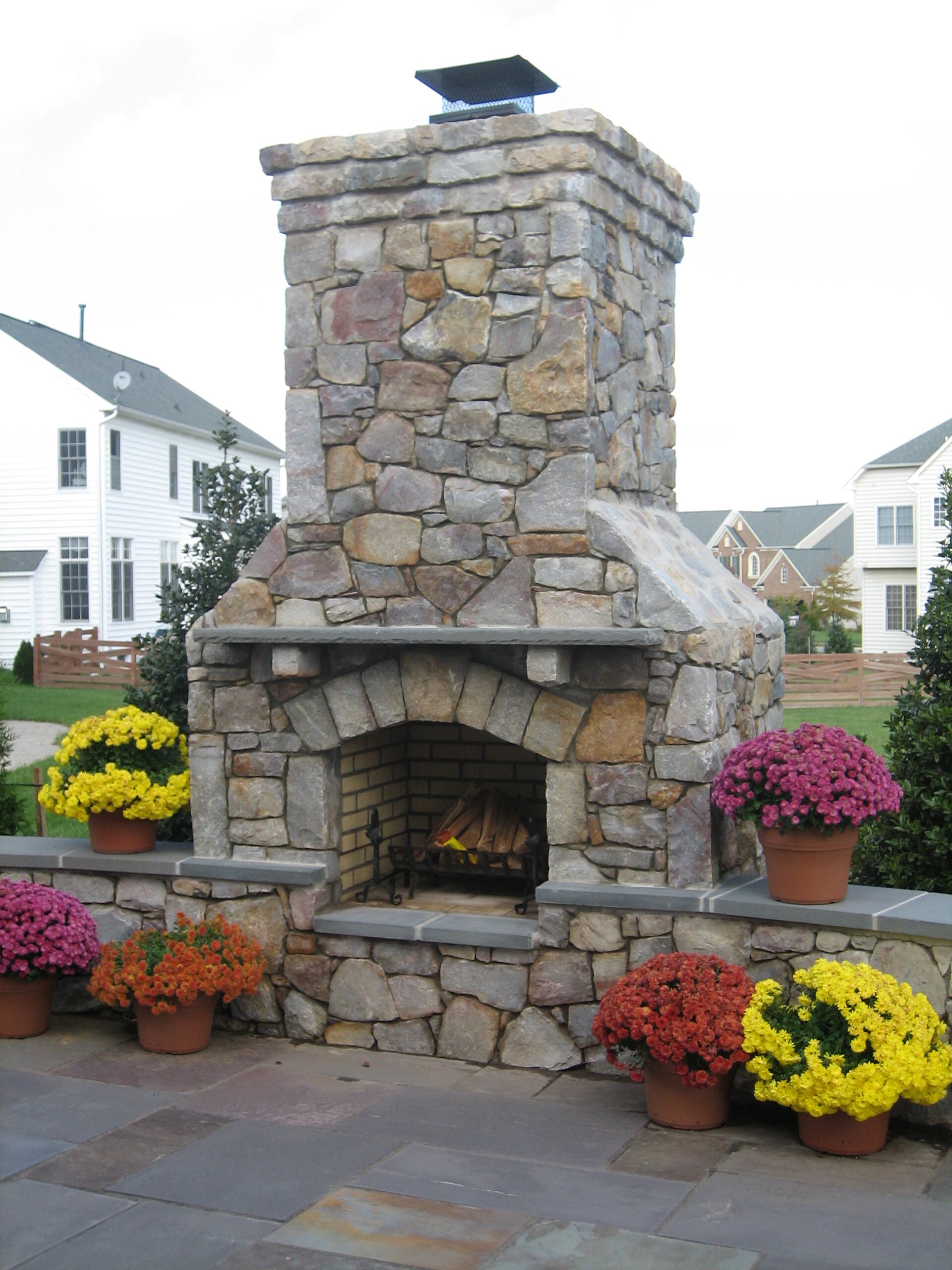 - Natural stone outdoor fireplaces